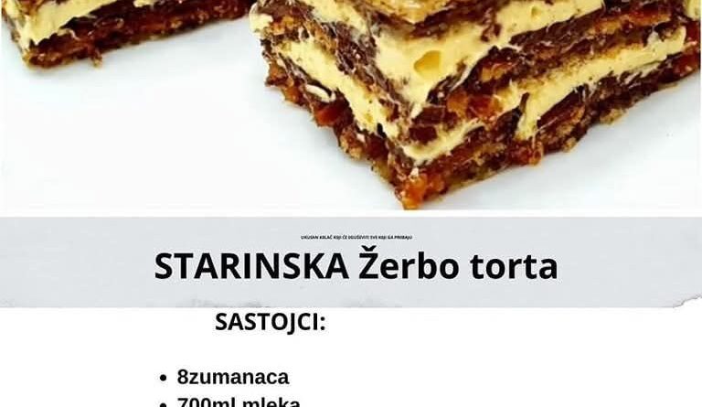 Read MoreSTARINSKA Žerbo torta. Recept za tortu koja mami osmehe Sastojci: Za biskvit:9 belanaca11 kašika šećera15 kašika mlevenih oraha2 kašike brašna1