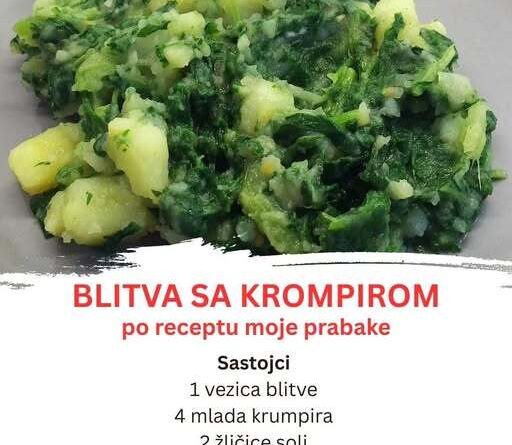 Read MoreSastojci 1 vezica blitve4 mlada krumpira2 žličice soli1 dcl maslinovog uljačešnjakperšin1/2 male žličice Vegete Natur Priprema Blitvu dobro oprati u