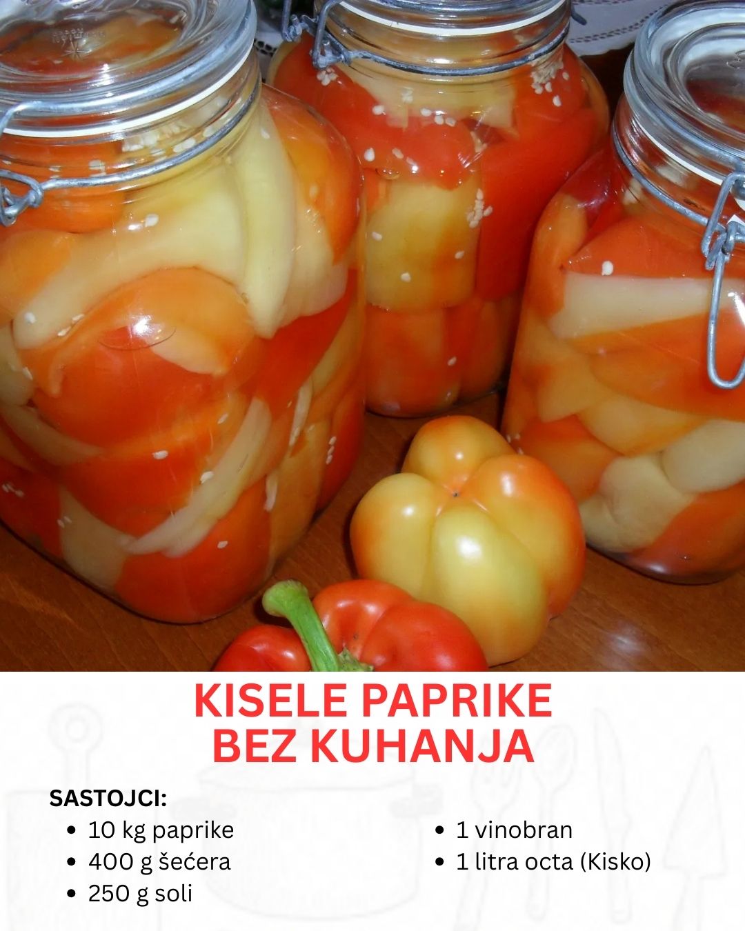 Napomena: S obzirom na to da u ovom receptu nema termičke obrade, važno je koristiti isključivo sveže i zdrave paprike, kao i čistu i suvu opremu.