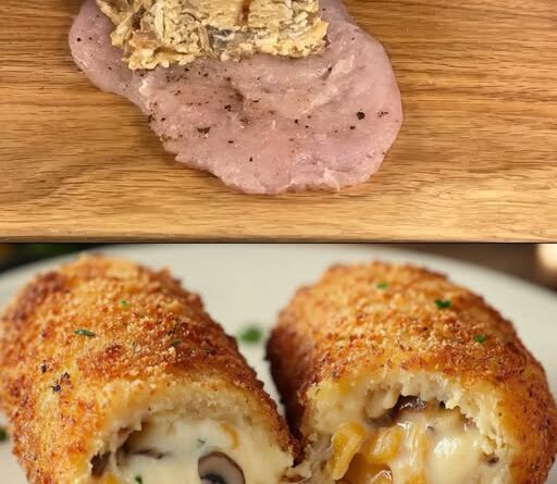 SOČNA PUNJENA PILETINA S SIROM I GLJIVAMA 🍗🧀🥬 – ZLATNO ZAPEČENA I POSLUŽENA S AROMATIČNOM POVRTNOM RIŽOM 🍚✨ IDEALNO ZA PORODIČNI RUČAK I POSEBNE PRILIKE! 💛🔥
