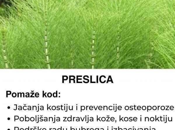 Read MorePreslica (Equisetum arvense) je biljka koju prirodna medicina cijeni već vijekovima zbog njenih snažnih regenerativnih svojstava. Bogata mineralima, posebno silicijumom,