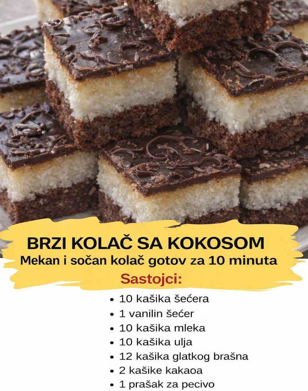 BRZI KOLAČ SA KOKOSOM…Mekan i sočan kolač gotov za 10 minuta