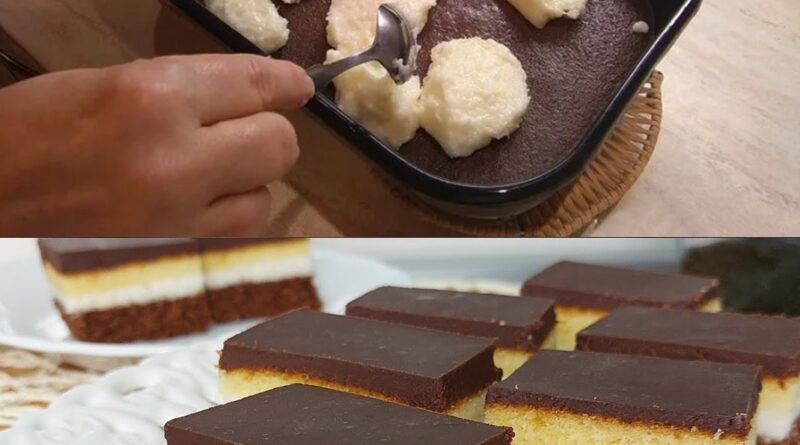 Peći na 180°C dok ne dobije zlatnosmeđu boju. Dok se biskvit peče pomiješajte kokos sa brašnom, šećerom i hladnim mlijekom i stavite ovu smjesu da prokuha. Dok se tamni biskvit dovoljno ispeče prelijte ga nadjevom i na njega stavite svijetli biskvit.
