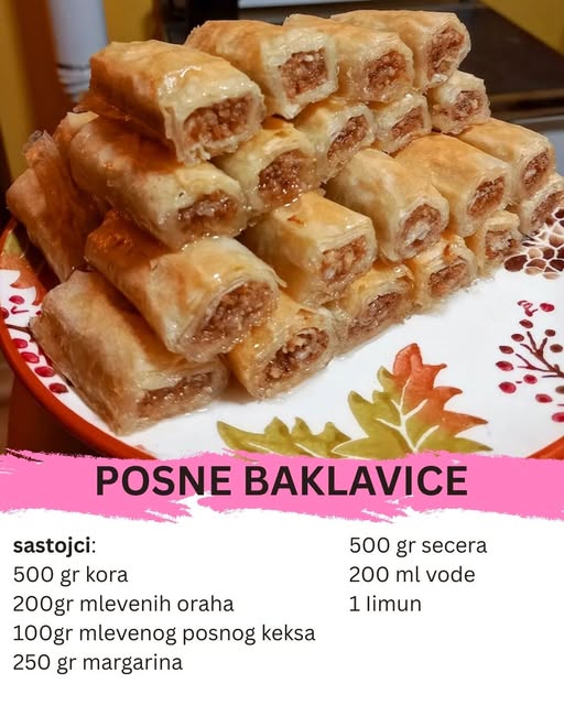 Baklava je jedan od omiljenih slatkiša u mnogim zemljama, a u ovom receptu ćemo vam pokazati kako da pripremite posne baklavice koje su jednako ukusne kao klasične, ali bez upotrebe životinjskih proizvoda. Ovaj posni kolač je savršen za sve koji žele uživati u tradicionalnom ukusu baklave, a pritom vode računa o svojoj ishrani.