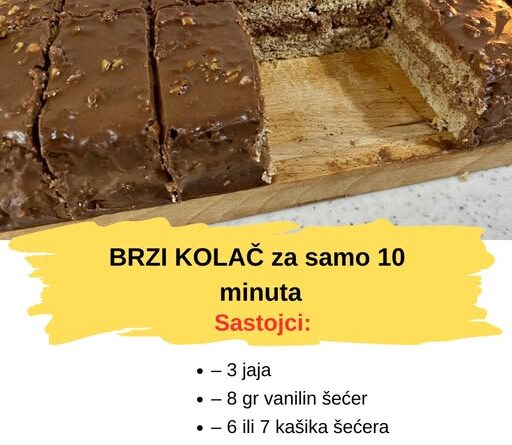 Read MoreSastojci:– 3 jaja– 8 gr vanilin šećer– 6 ili 7 kašika šećera– 100 ml ulje– 100 ml mlijeko– 12 kašika